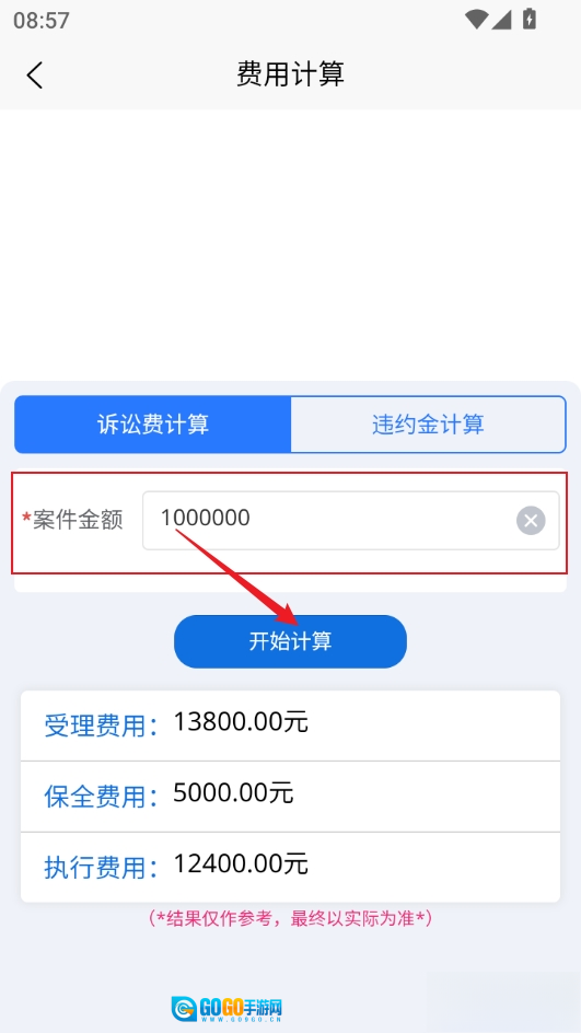 2、输入按键金额点开始计算,可以看到下方列出了相关费用