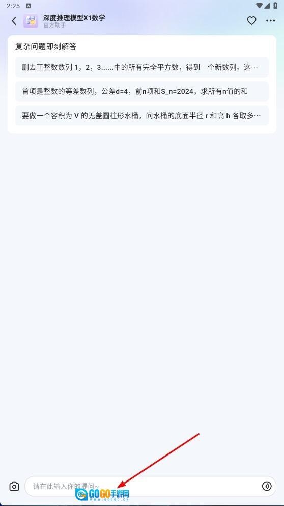 4、打开深度推理模型X1数学智能体界面,在输入框中输入数学问题,即可得到相应解答。