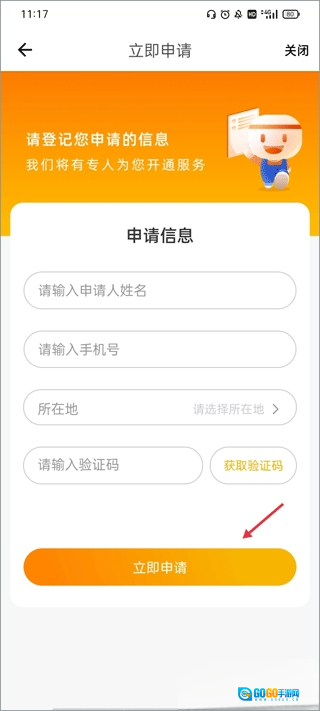 3、录入申请人的基本信息,填写完毕后点击“立即申请”按钮。