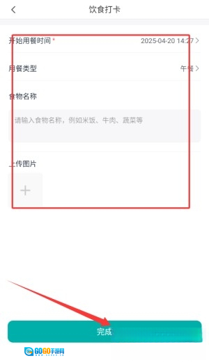3、如下图,让我们选择饮食打卡。用户只需填写资料即可完成打卡。