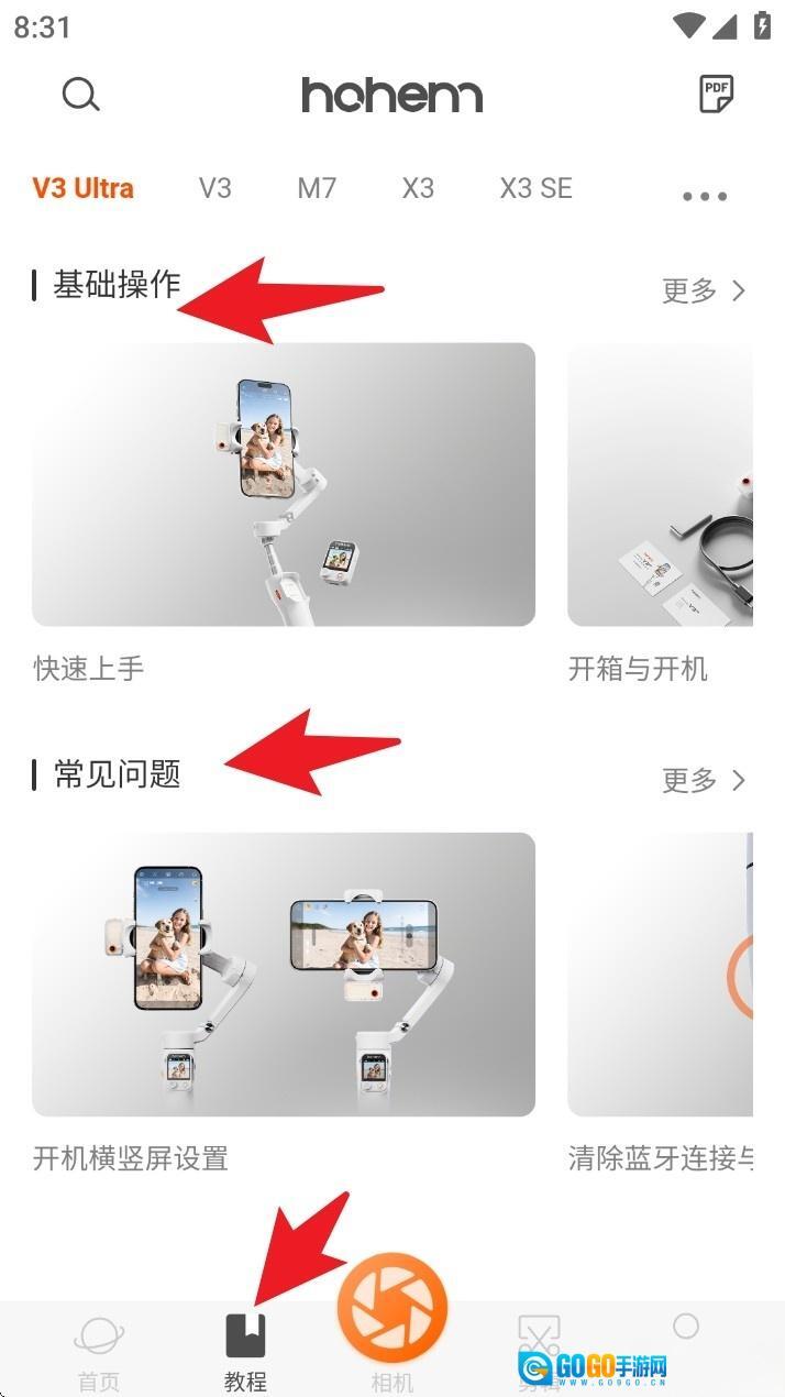 1. 点击底部导航栏的「教学」选项进入教学专区,能根据自身需求选择「基础操作」或「常见问题」板块来查看教学内容。