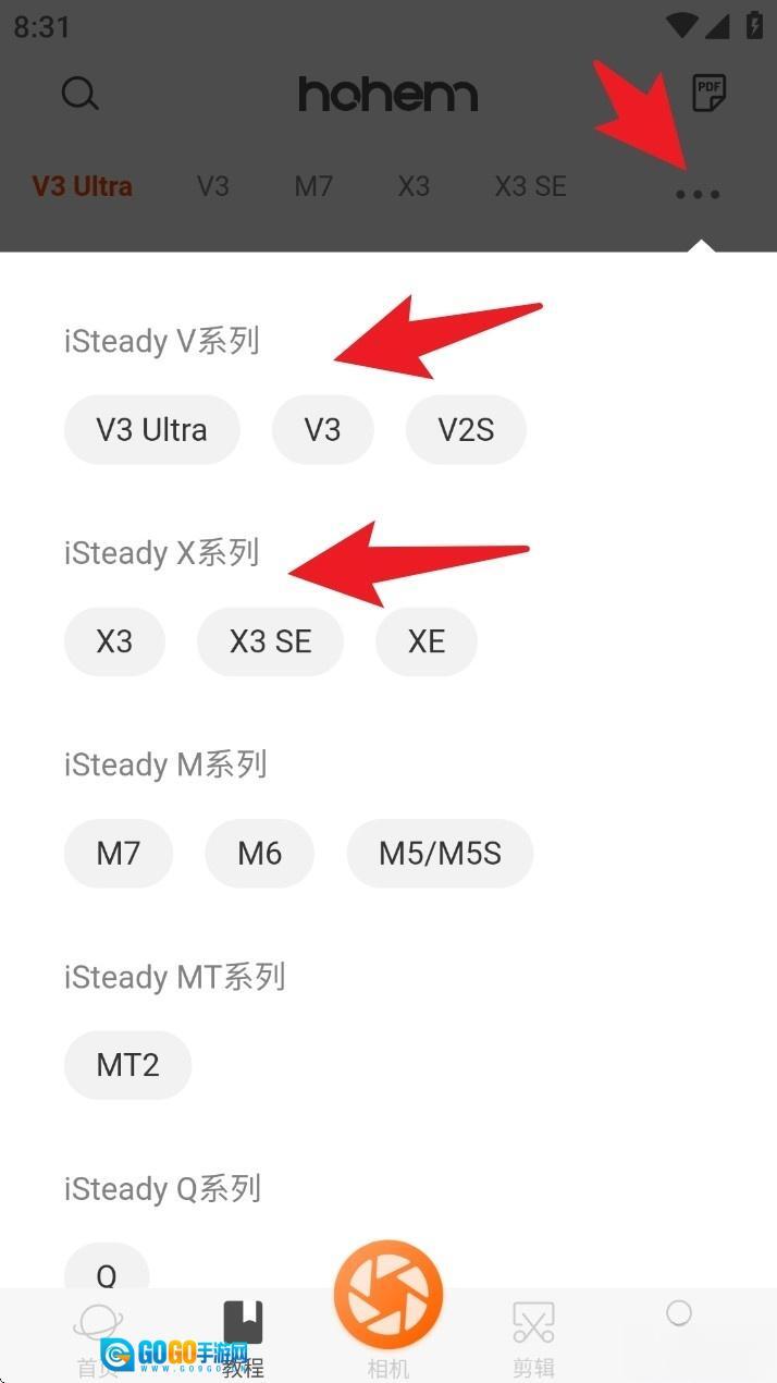 2. 若要查看不同型号的使用说明,可点击教学页面右上角的更多图示,切换到对应系列型号查看专属教学内容。
