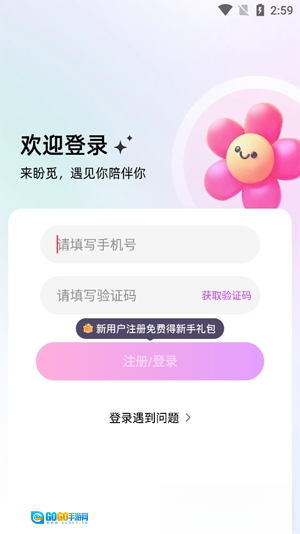1、打开盼觅App,在登录界面输入手机号和验证码,点击登录。