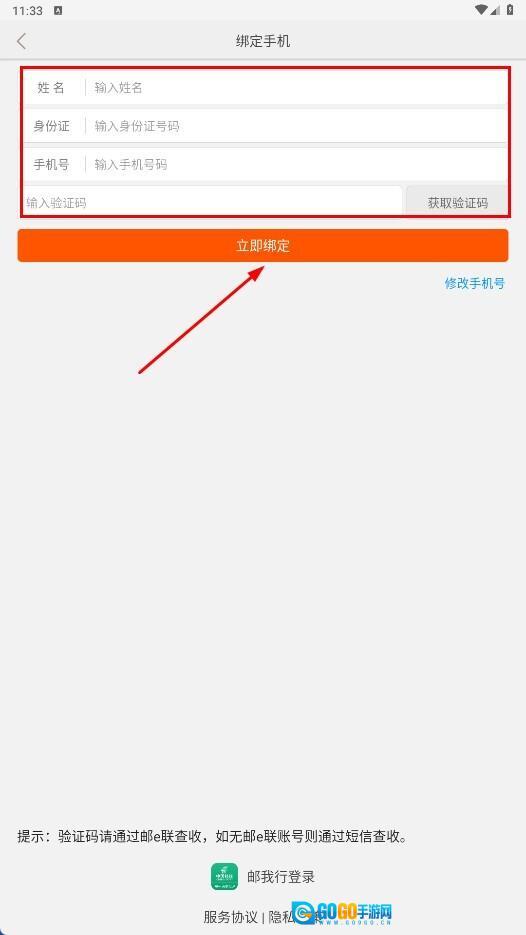 1、进入手机绑定页面后,依次填写姓名、身份证号码、手机号码和验证码,随后点击【立即绑定】功能按钮,即可完成手机绑定操作。