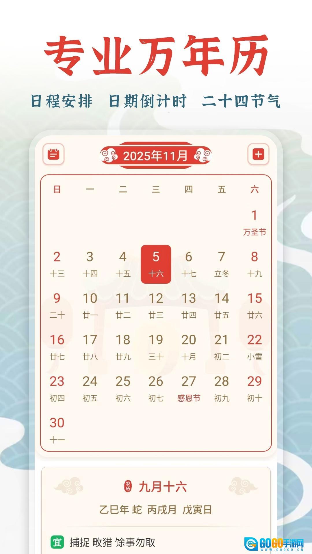 信息整合一目了然:集公历、农历、天气、黄历、生日、节日等多种信息于一体,信息整合度高。用户无需在多个软件之间切换,在一个平台上就能获取所需的各种信息,方便快捷,让生活更加轻松有序。