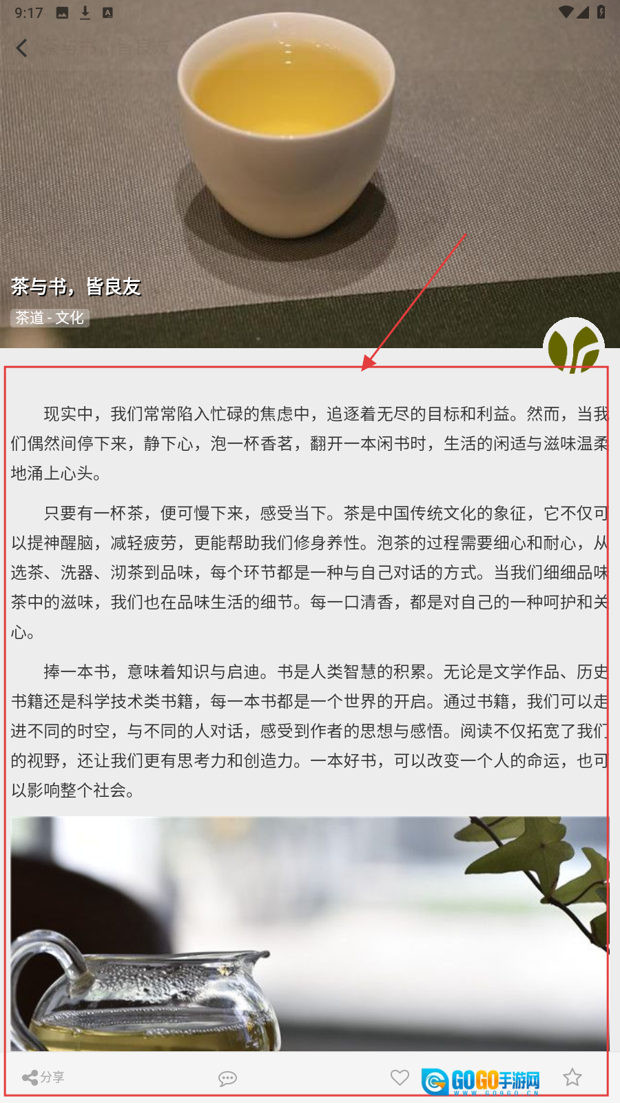 2、进入文章详情页,阅读茶道文化内容,感悟茶与生活。
