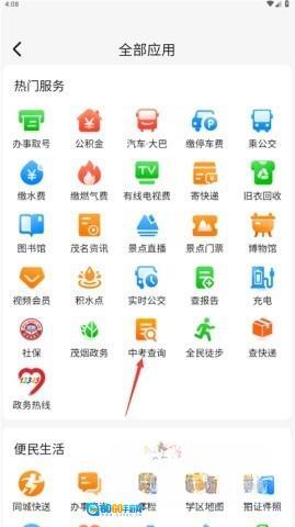2、在服务页面里找到“中考成绩查询”的图标或者相关公告,点击进入就能查看成绩了。