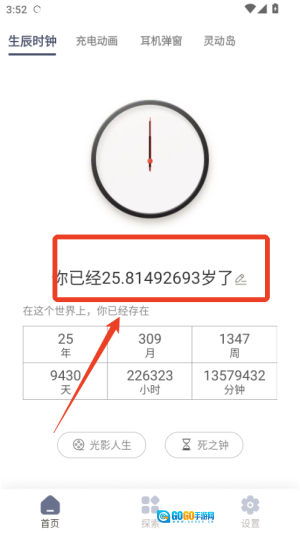 2、借助死之钟功能设定预期的生命终点,软件便会生成专属的倒计时,以此提醒人们剩余时间的珍贵。