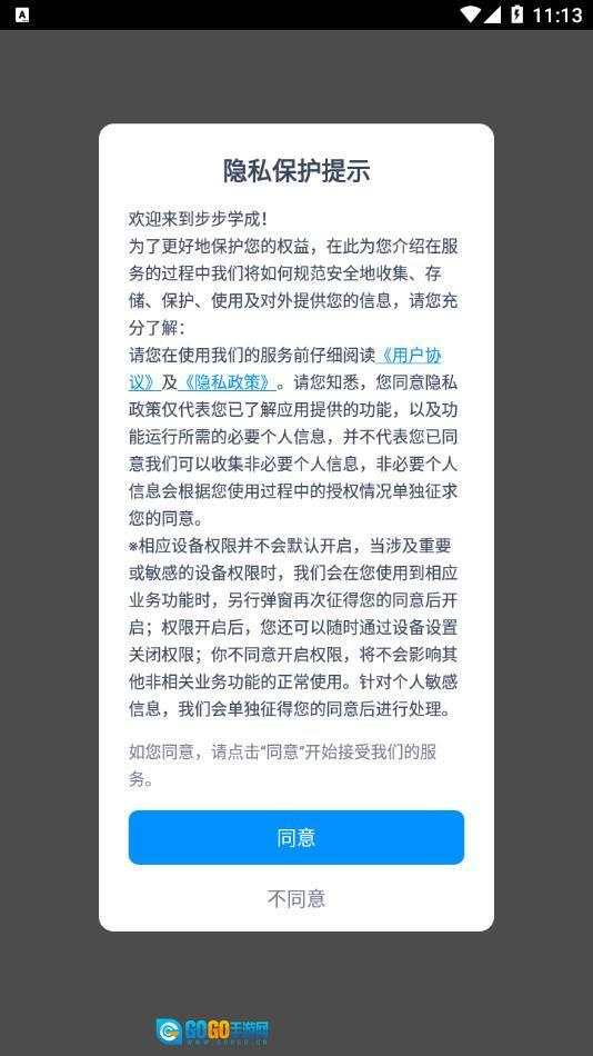 1、安装软件后打开,点击同意弹出的隐私保护提示。
