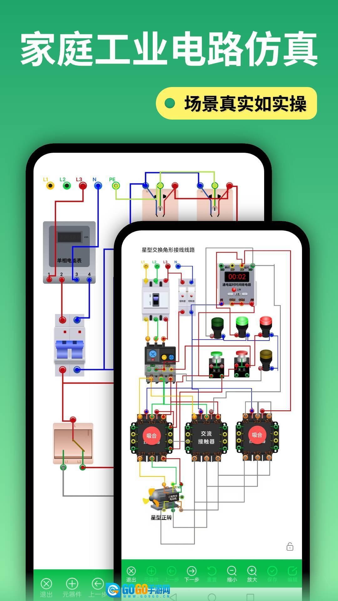 电路仿真接线是一款面向电工行业的综合性仿真学习工具,核心功能聚焦电路设计、接线训练及电工知识学习。软件以高度还原的家庭电路与工业电路仿真场景为基础,覆盖从基础元器件识别到复杂电路搭建的全流程训练环节,凭借丰富的元器件库与虚拟仪器,实现实时故障检测与动态仿真分析。其突出特点是将理论学习与实操训练紧密结合,既能助力零基础用户快速掌握电工基础知识,也能满足职业电工复审、特种作业考试等进阶学习需求,堪称电工技能提升的“数字化实训平台”。