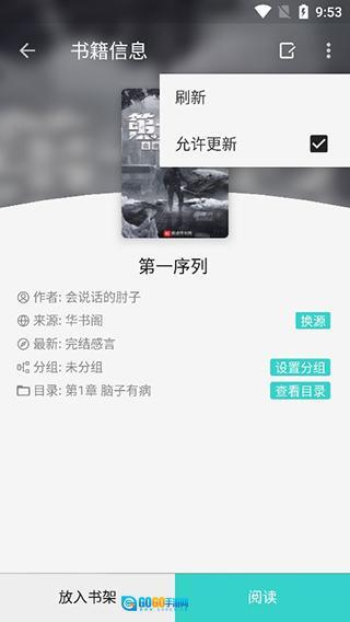 4、在书籍信息栏目里,我们既能直接阅读,也能将其添加到书架中。