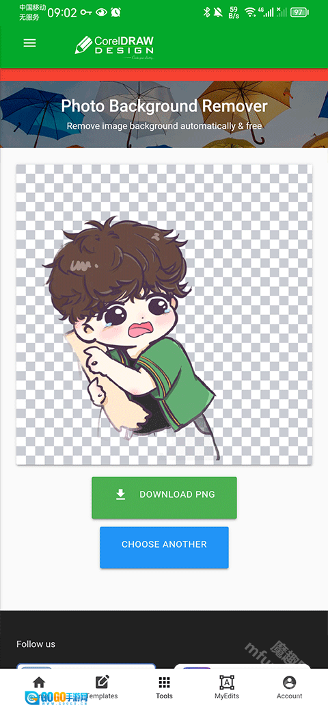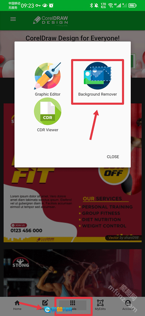 1、启动CDR软件后,点击界面底部中间位置的“Tools”选项,接着在展开的菜单里选择“Background Remover”功能。