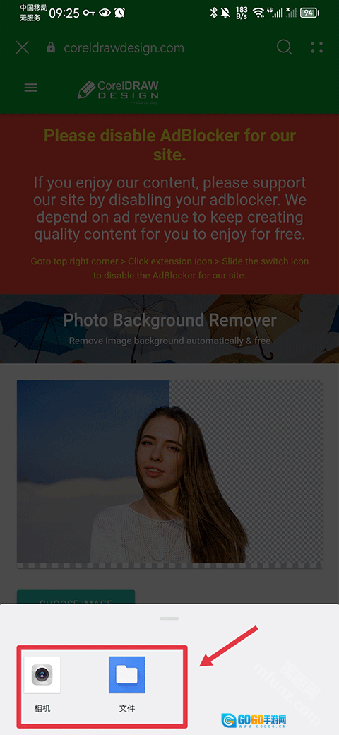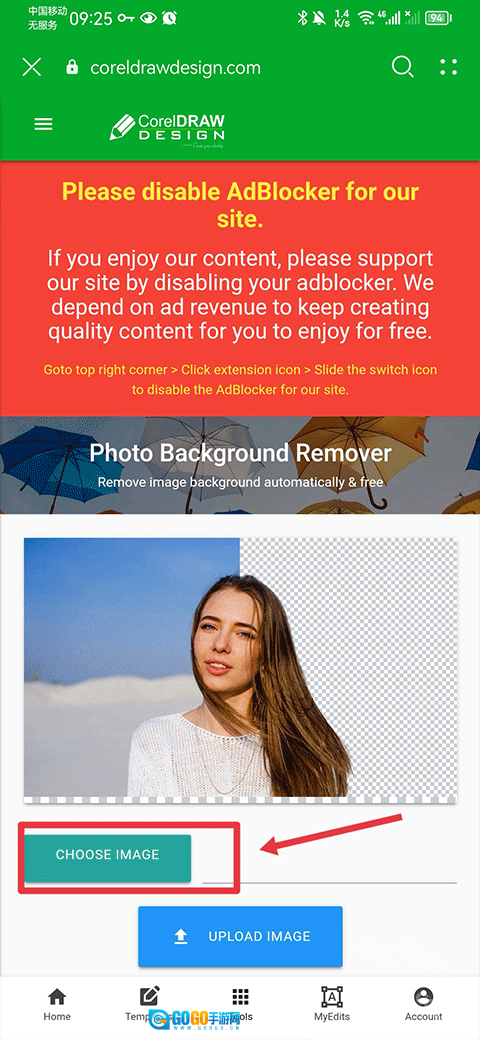 2、进入功能页面后,点击“Choose Image”按钮上传图片。