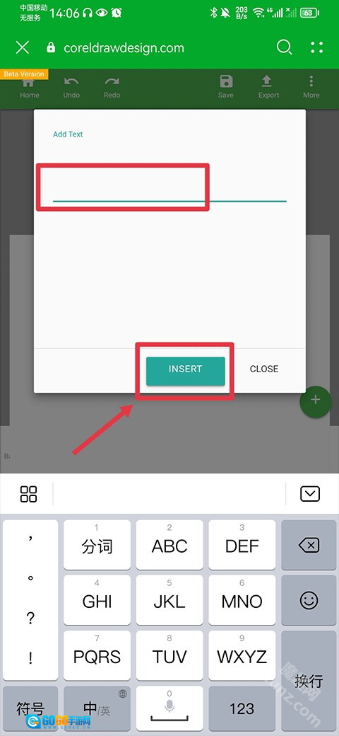 5、文字会显示在模板上,能够借助周围的正方形来调整其大小。