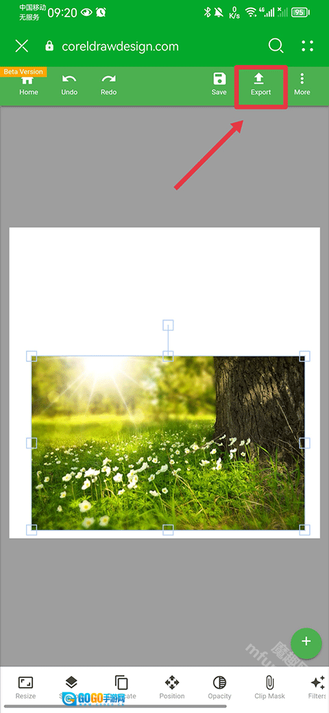 1、在图片编辑页面完成编辑操作后,点击右上角的export按钮。