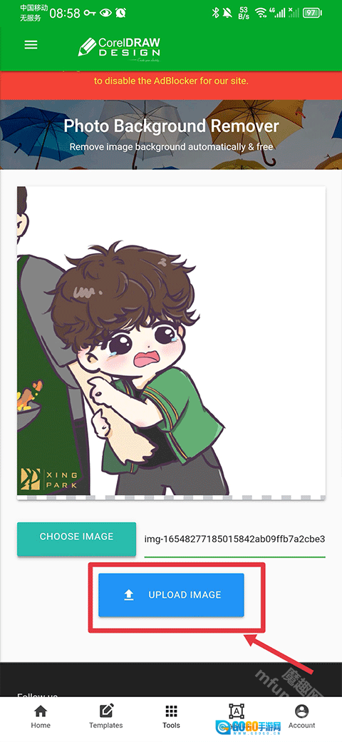 4、确认好所选内容后,点击“Upload Image”按钮即可完成上传操作。