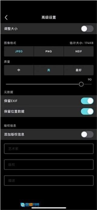 3、进入高级设置界面后,用户能够对照片大小、照片格式、照片质量以及版本信息等内容进行调整,调整完毕返回并再次选择【保存副本】,即可完成照片的保存操作。