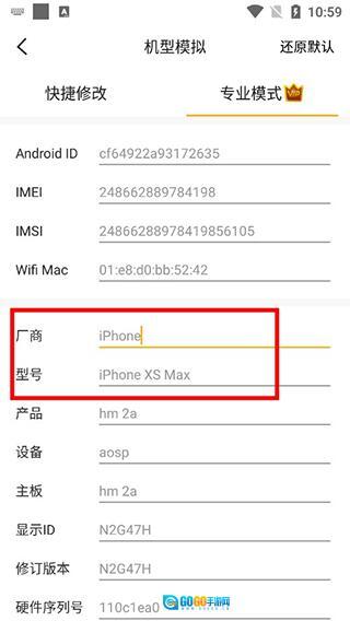 5、来到机型模拟,用户可以设置手机的厂商和型号。