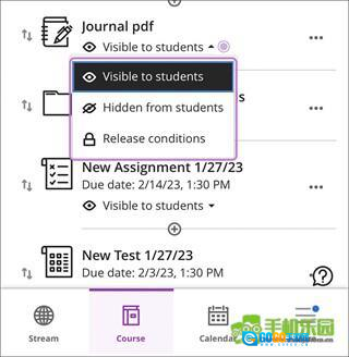 用户若想进一步调整期刊的可见性或发布条件,也可通过课程内容板块进行操作。