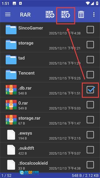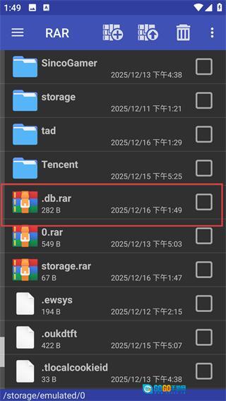 1、先在RAR文件列表里找到要处理的目标压缩包(比如【.db.rar】),接着准备执行解压操作,这可是后续所有步骤开展的基础呢。