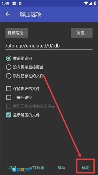 3、在解压选项界面确认好目标路径以及相关设置后,点击【确定】按钮,即可启动压缩包的解压流程。