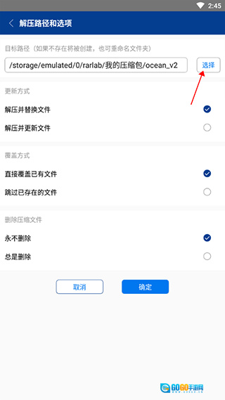 2、点击选择解压文件,点击右侧的选择解压的路径