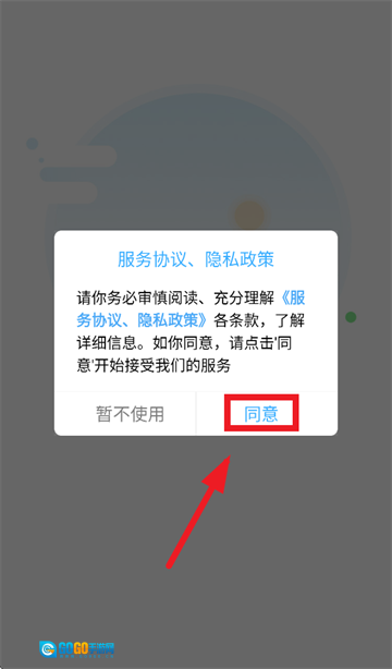 打开金途车联,先同意服务协议、 隐私政策