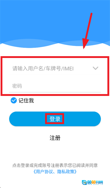 进入登录界面后,输入用户名、车牌号或IMEI,再输入密码,点击登录按钮就能完成登录操作。