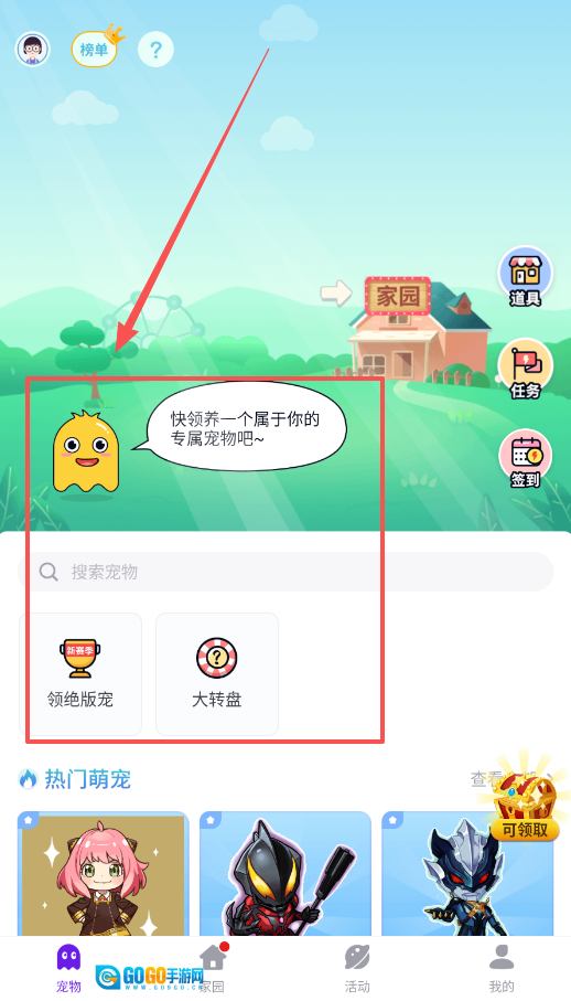 二、宠物页面是你的核心收集阵地,借助搜索功能查找特定宠物,留意绝版宠物的领取契机,大转盘或许会带来意外惊喜,热门榜单也很值得参考。