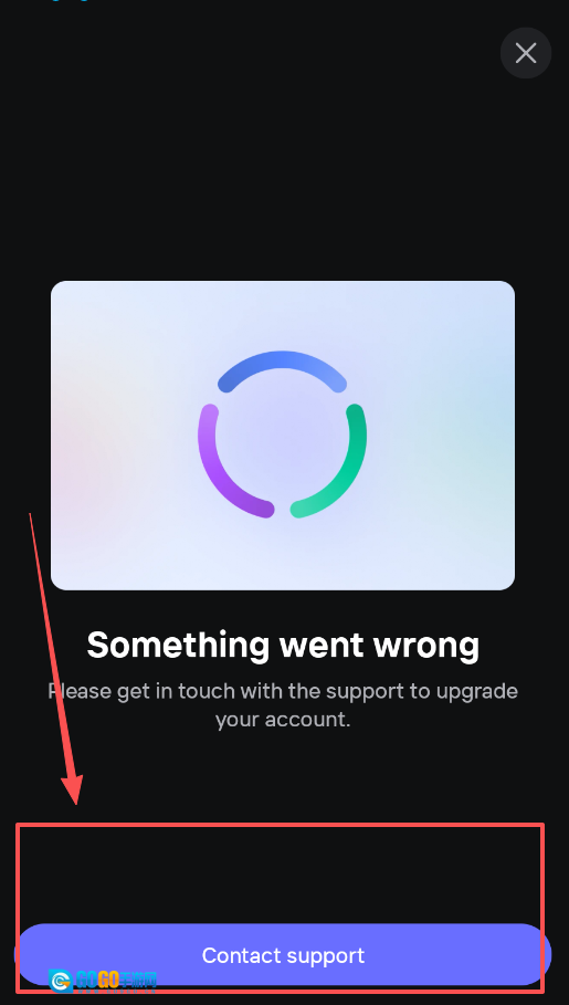1、看到“出了点问题”的提示时,不用慌张。首先要做的就是点击下方的“联系支持”按钮来获取帮助。