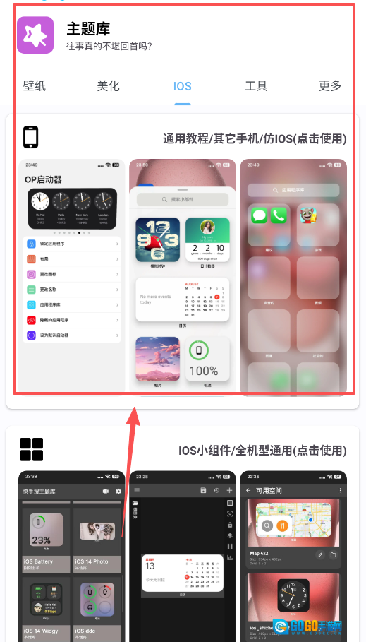 想模仿苹果手机的风格,可点击“IOS”标签或“仿IOS”教程,这些内容会引导你使用“OP启动器”,并在设置中调整桌面图标与布局。