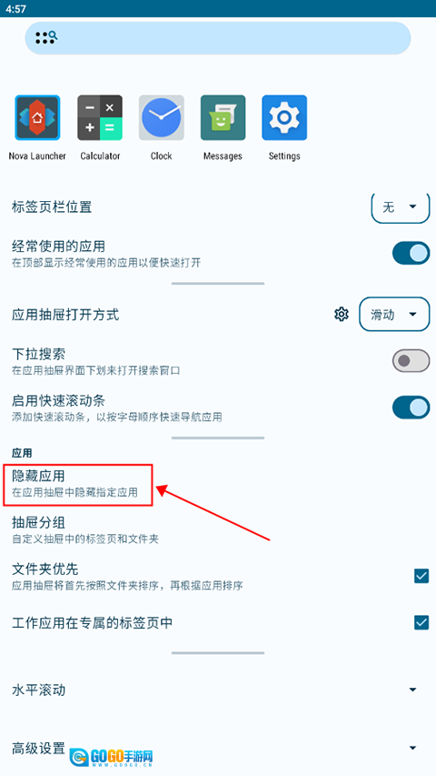 Nova启动器怎么隐藏应用