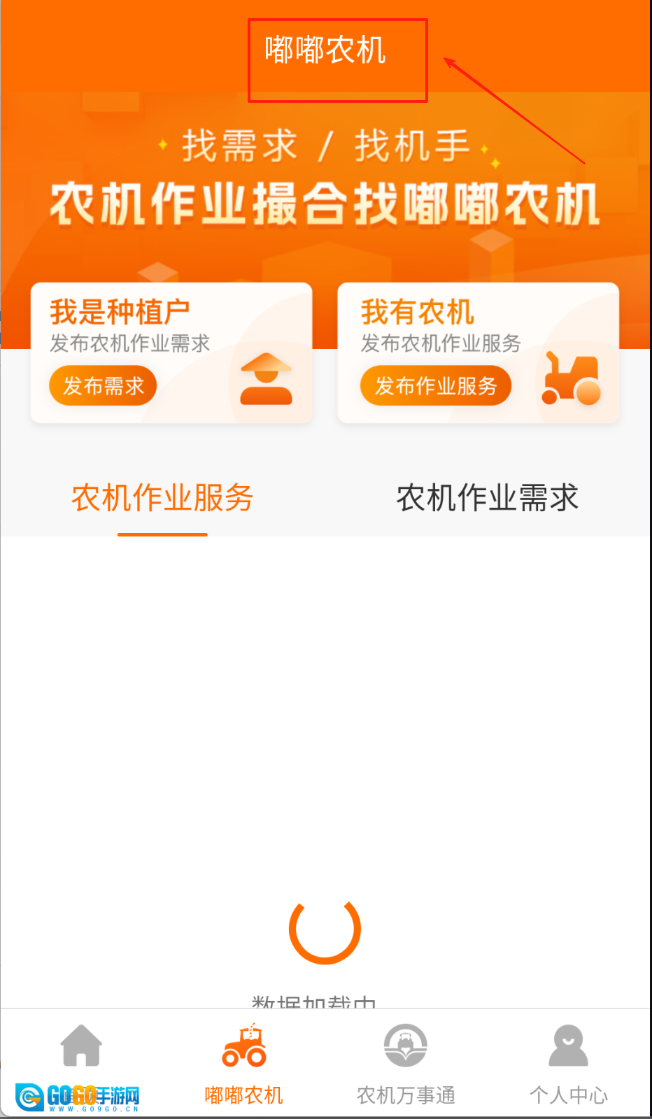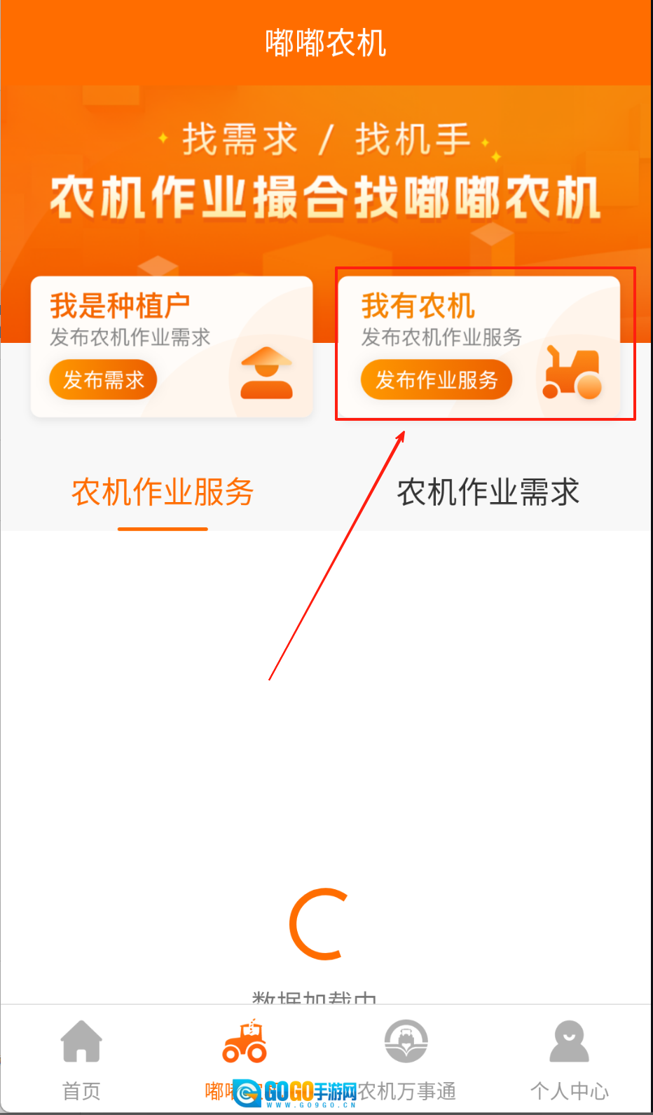 3、然后点击上方的下拉框,切换至我有农机页面。