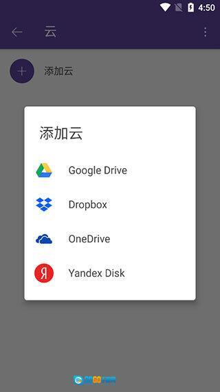 6、找到“云”的入口并点击,接着选择“添加云”选项,从中找到你常用的云盘,完成账号登录后,就能在主页查看该云盘里的内容了。