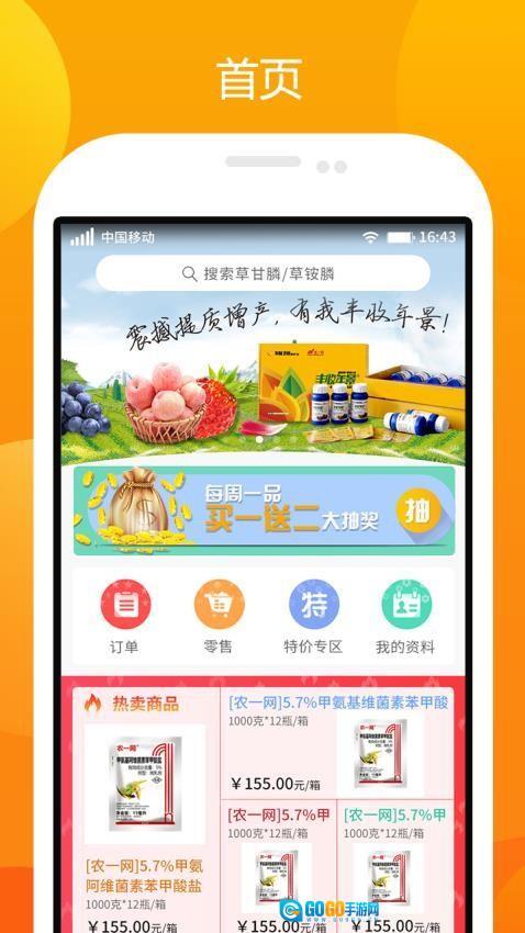 想要通过手机上网购买品牌农药,轻松做代购赚钱,找农一就足够了。农一网手机客户端目前共设计了申请代购、秒杀专区、农药商城三大板块,只要成功安装这个手机移动客户端,就能完成申请、注册、选货、下单、支付等一系列购物流程。
