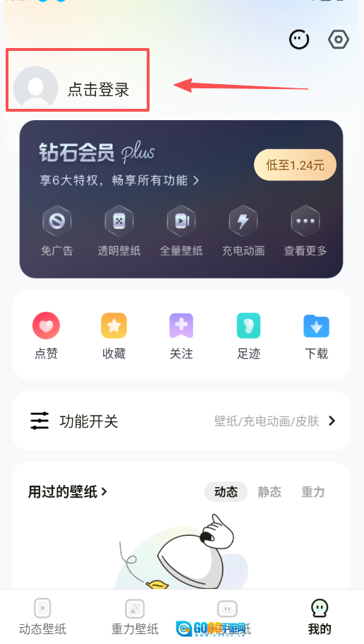 3、完成“点击登录”操作是使用全部功能的首要步骤,登录之后,会员特权相关的信息便会展示出来,例如每日能够以优惠价格获取所有壁纸。