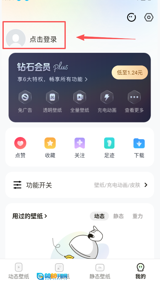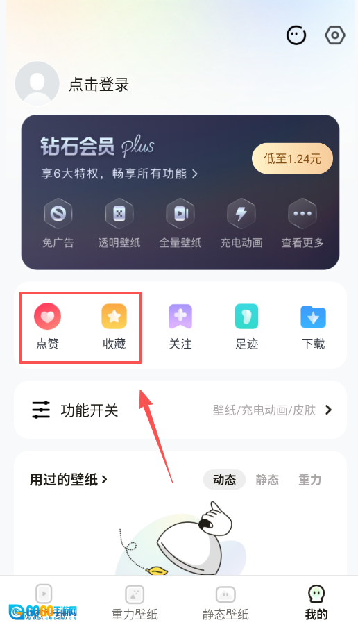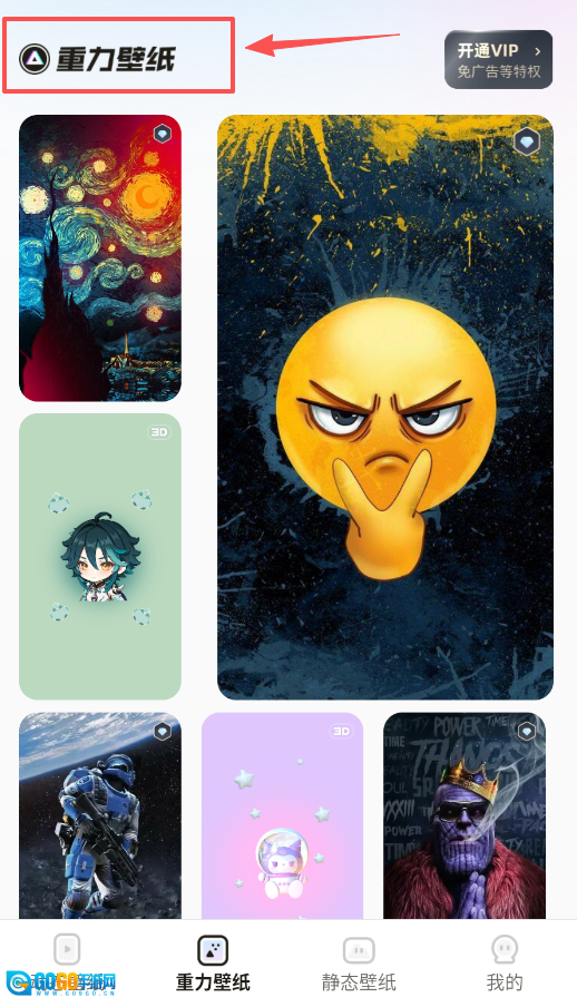 想要体验手机倾斜时壁纸元素随之移动的效果,可点击底部导航栏的“重力壁纸”进入专区。