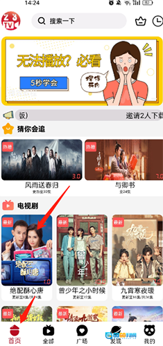 1、打开软件,点击底端的【首页】选项,选择需要的电视剧、电影。