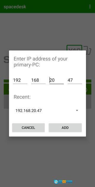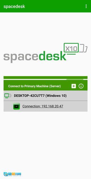 2、在电脑上安装好spacedesk软件后,在同一局域网内,软件内会自动搜索到此电脑,如果没有搜索到,也可以点击中间的加号,进行添加,ip地址为电脑软件中显示的ip;