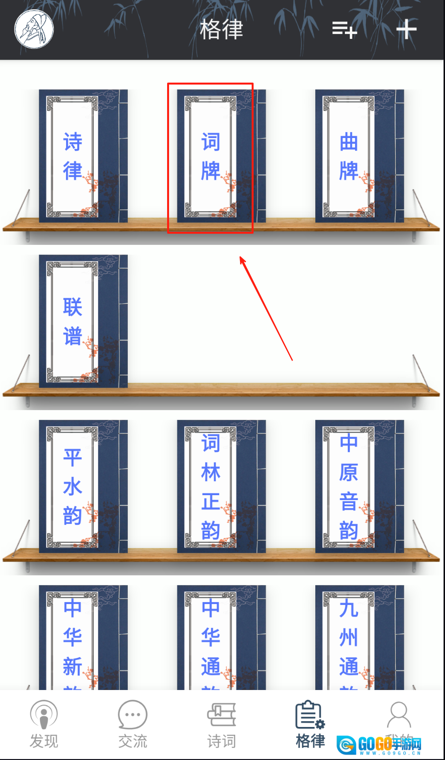 3、进入格律页面挑选词牌,创作过程中实时校验押韵规则,完成创作后可在“我的”页面查看作品评分,同时对云盘备份进行管理。