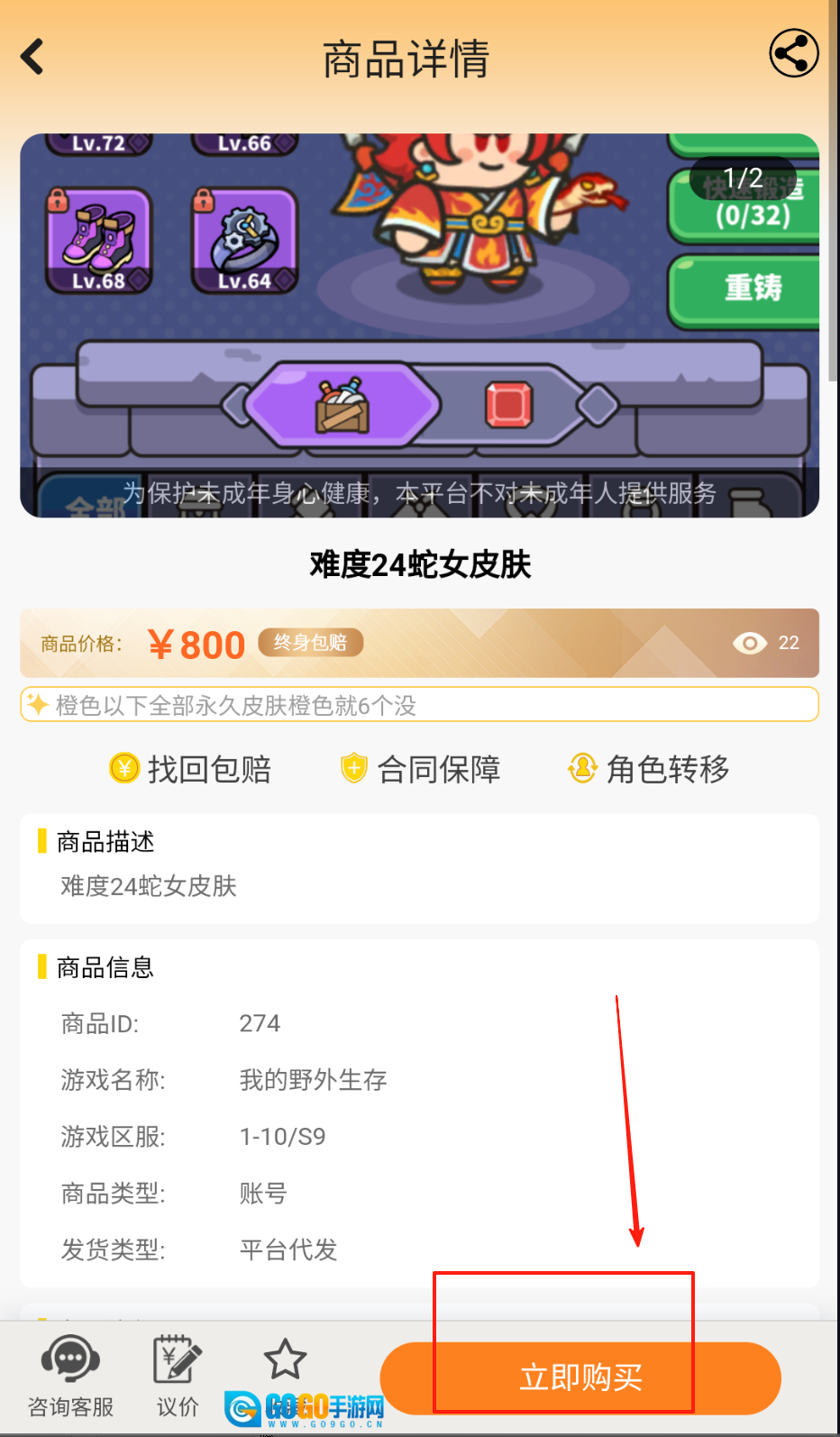 3、点击立即购买进入担保交易流程,完成实名认证后等待客服确认交割。