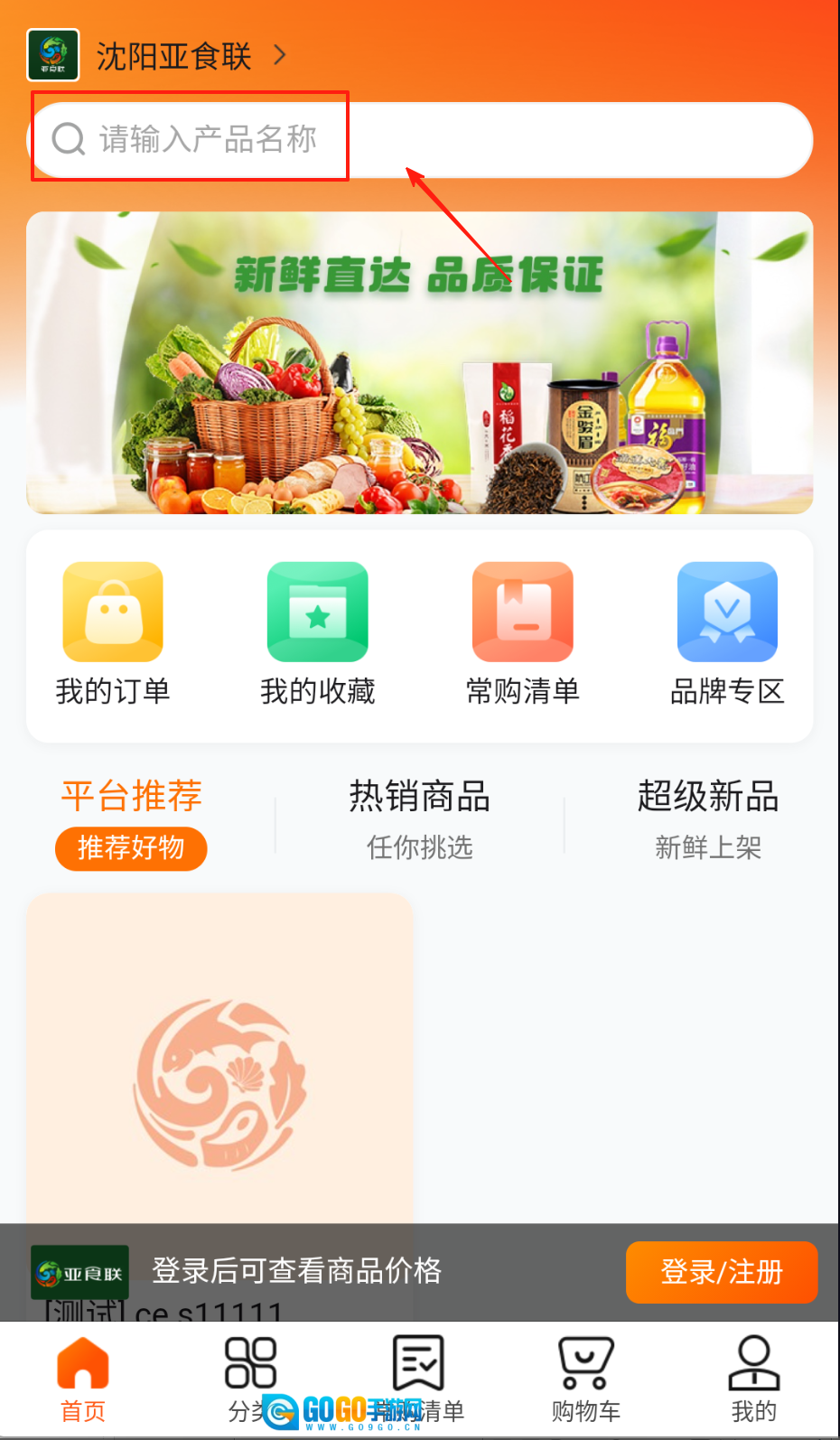 2、在搜索栏输入具体商品名称,通过关键词匹配快速找到目标食材完成选品。