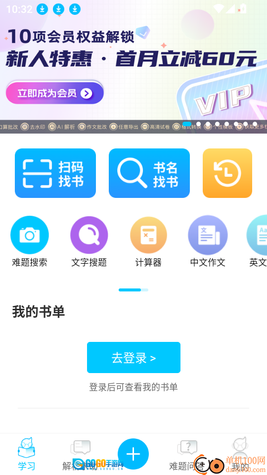 在软件的学习界面功能模块里,点击“书名找书”按钮即可进入下一步操作。