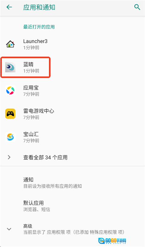 2、在通知中找到并点击蓝睛。