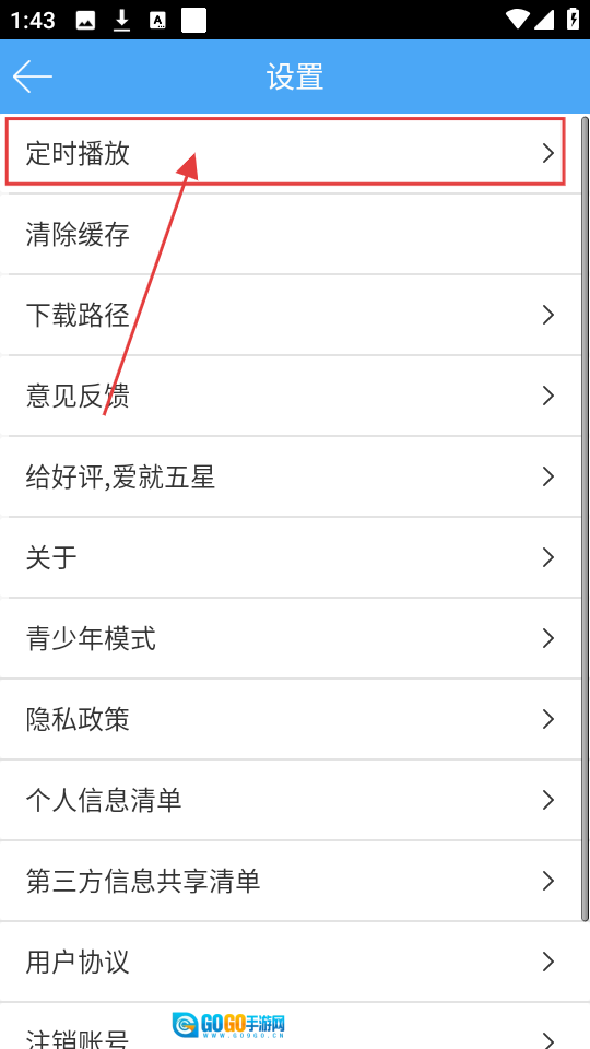 2、在设置页面,找到【定时播放】选项并点击,进入定时播放设置页面哦。
