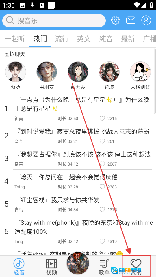 1、在软件主界面,底部有【轻音】等功能入口,若想管理个人相关内容,点击【我的】即可哦。