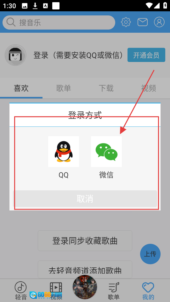 4、之后会出现【登录方式】选择界面,可选择【QQ】或者【微信】进行登录,按照提示操作很便捷呢。