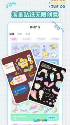 1、平台拥有海量贴纸素材资源,能为用户带来舒心的使用体验,丰富多样的贴纸可供自由挑选,可满足用户的各类需求,助力你的创意模拟。