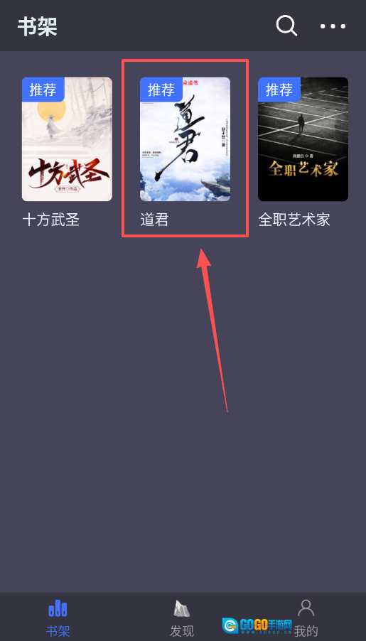 1、主要操作围绕底部导航栏展开,书架页面存放着你已收藏的全职艺术家、道君等作品,方便你随时切换查找想读的内容。