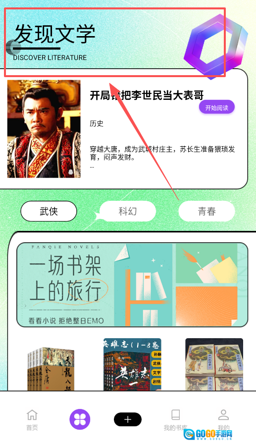 2、阅读书籍:进入“发现”页面,这里会推荐各类小说,遇到感兴趣的作品,点击“开始阅读”按钮即可开启阅读。